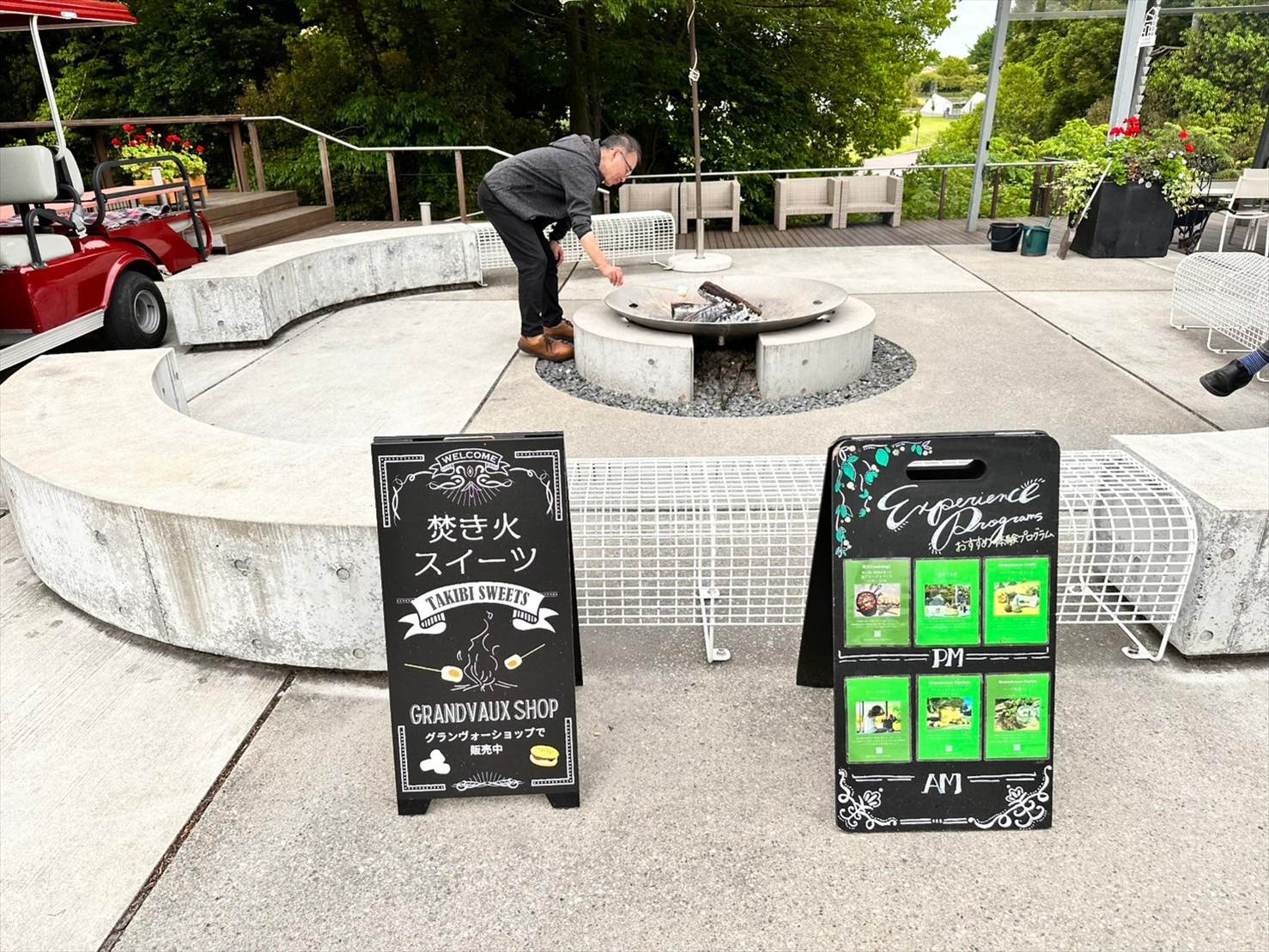 ▲グランヴォー スパ ヴィレッジ内、ショップの近くに焚き火エリアが用意されています。