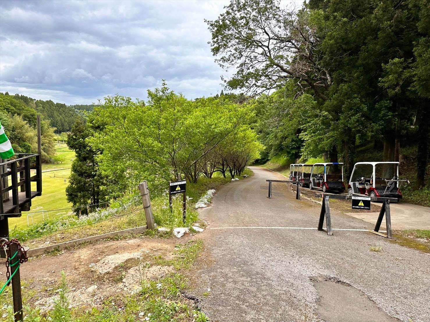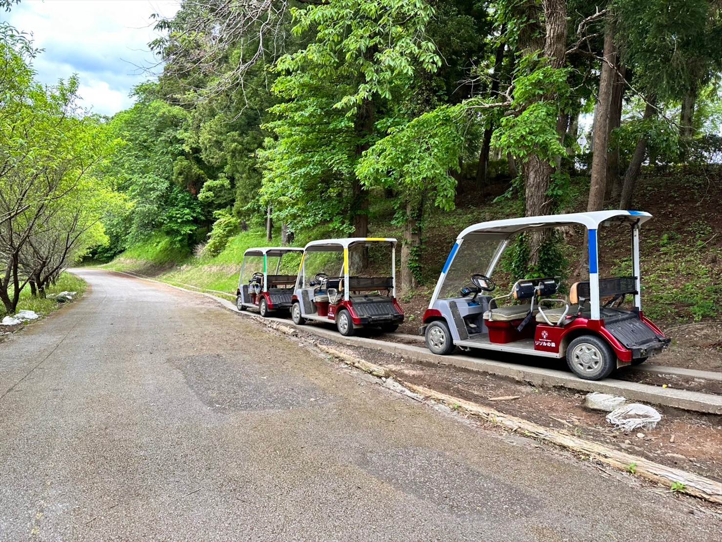 ▲ロングジップスライドから帰るときに使用しているのか、ゴルフカートが用意されていました。