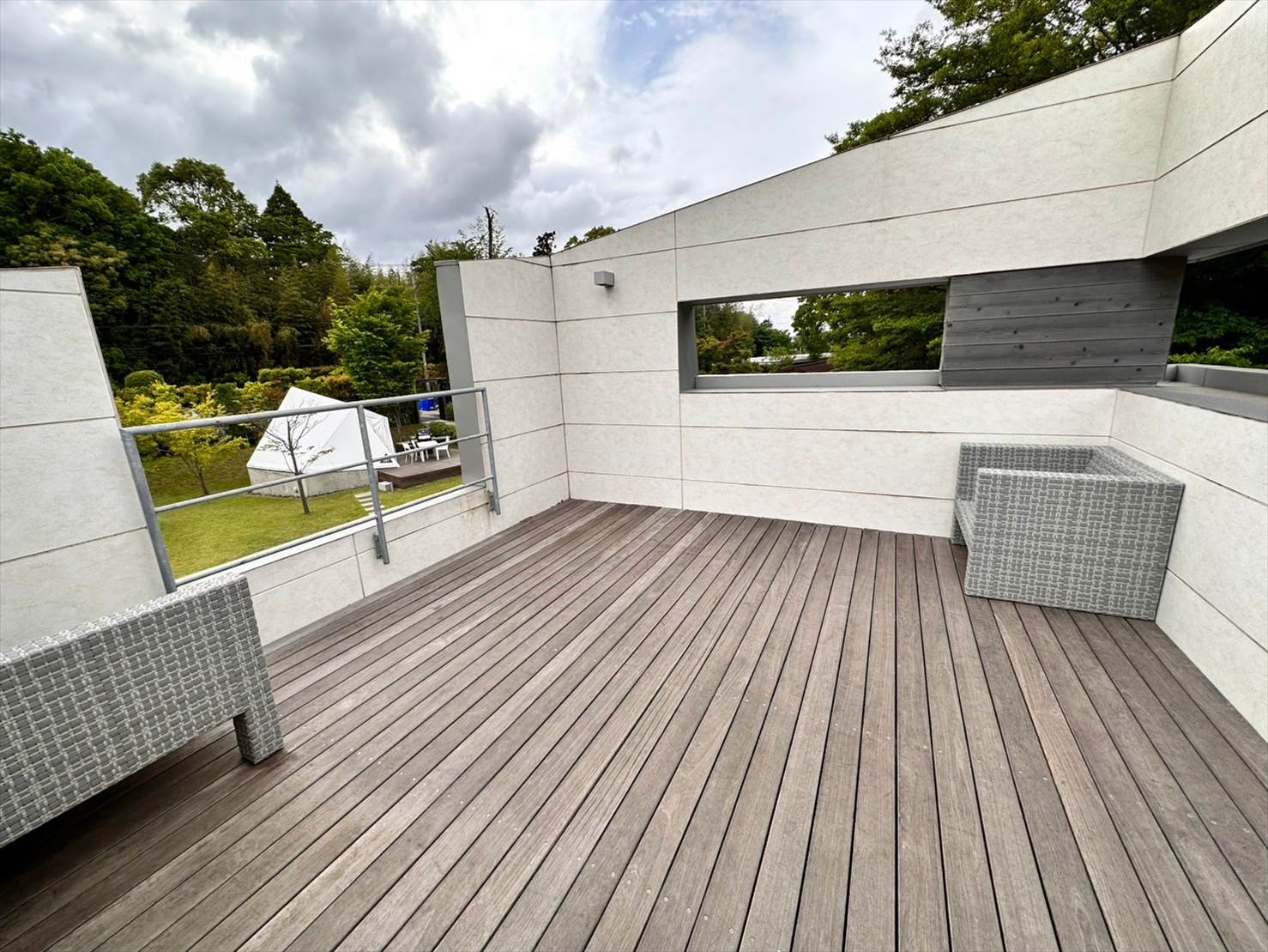 ▲木製の可愛らしいお部屋に、大きなテラスがついていました!