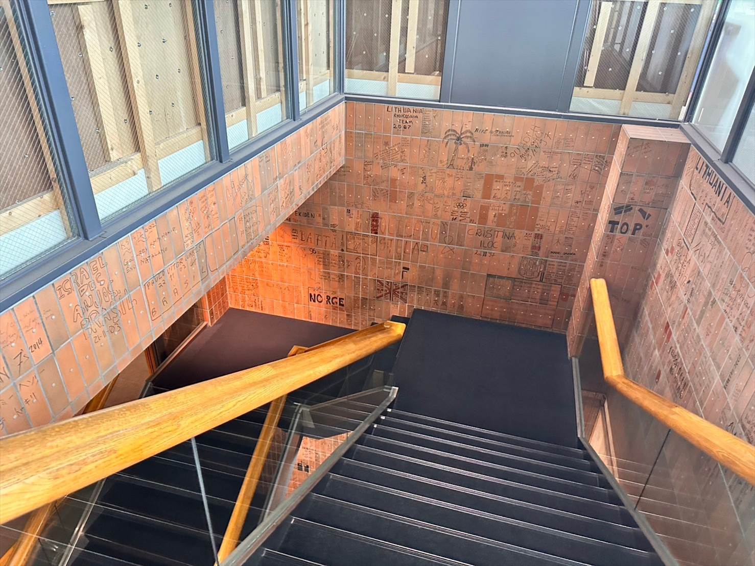 ▲いよいよMTC (メディカルトレーニングセンター)の3階、メインの体育館スペースへと向かっていきます。