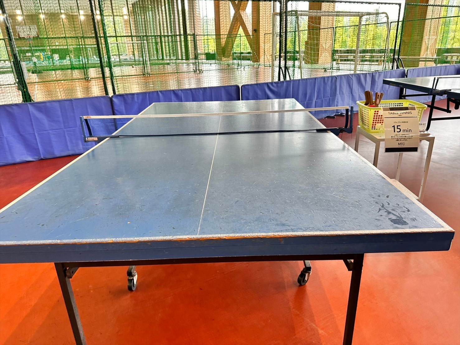 ▲卓球。周囲がネットやバリゲード(?)で囲まれているので、あっちこっちにピンポン玉を飛ばしてもなんとかなりました。笑