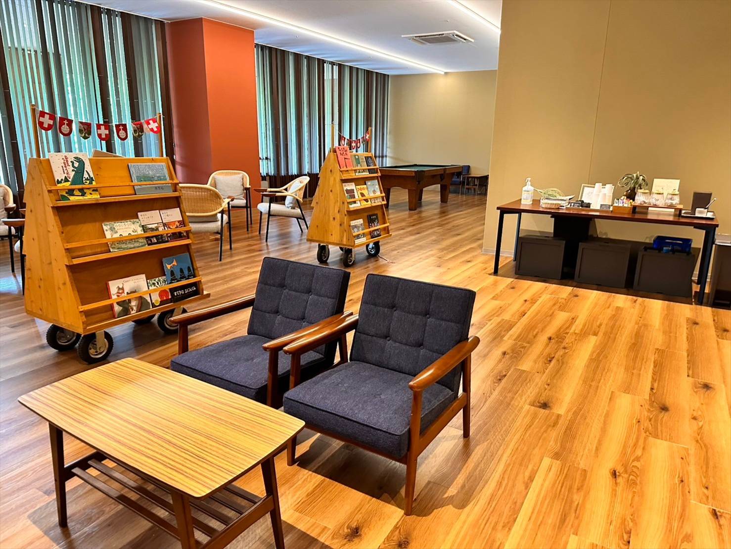 ▲ラウンジ内にはゆっくりくつろげるようなテーブル&ソファのセットや、絵本などの用意もありました。