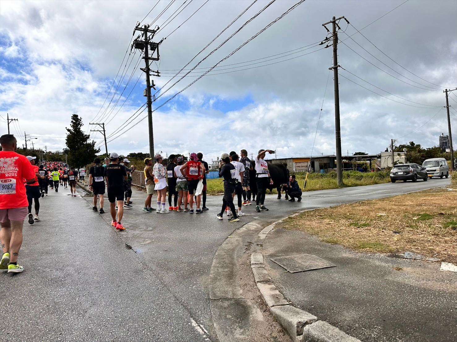 ▲ふと沿道に目をやると、なんと黒い牛さんが応援に来ていました!びっくり。