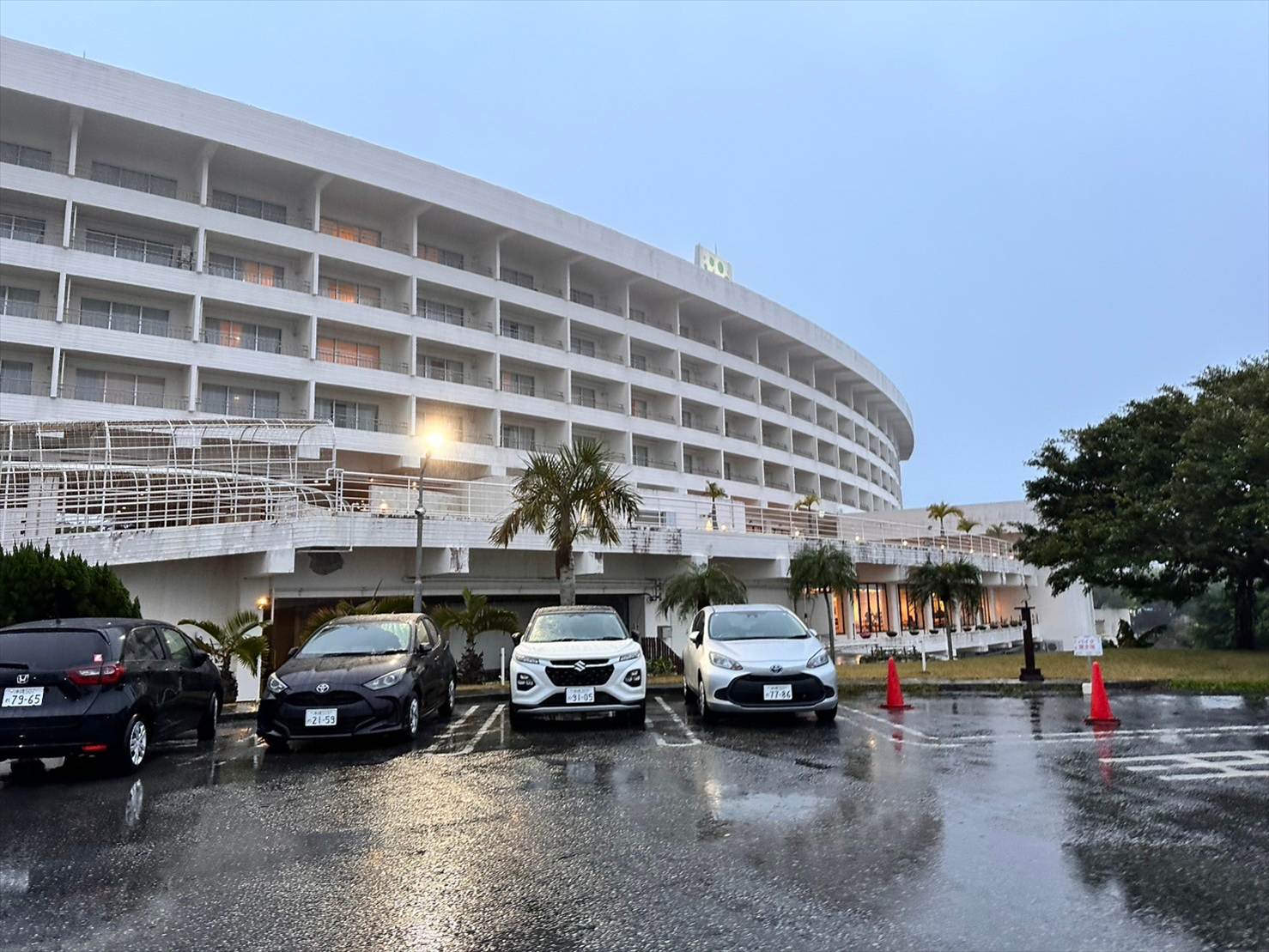 雨が降りしきる中レンタカーで沖縄総合運動公園へ