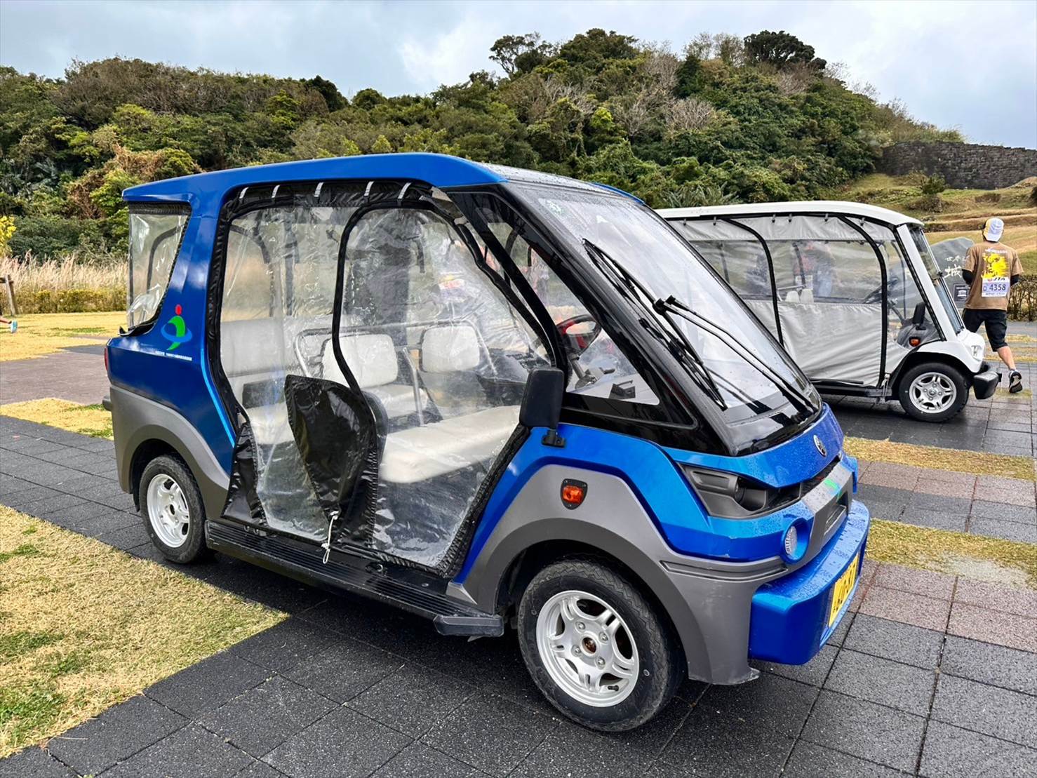 勝連城跡の麓にあったカート。全天候対応型です。凄い。