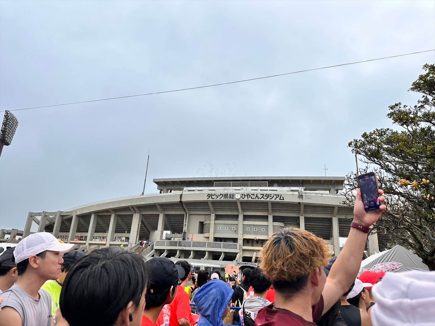 スタートの号砲と共に、ひやごんスタジアムの方で空砲(花火?)が上がり、参加者から拍手が生まれました。ついに始まってしまった…!!