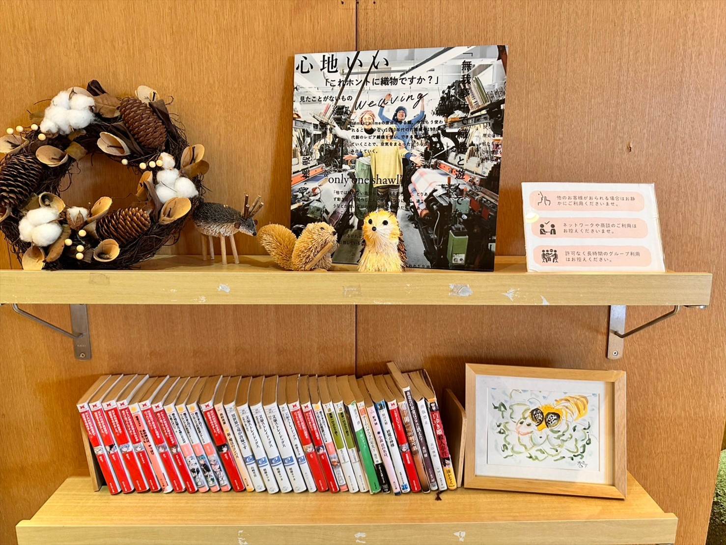 ▲ラウンジの中にはちょっとした本棚が用意されており、自由に手にとって読めるようになっていました。