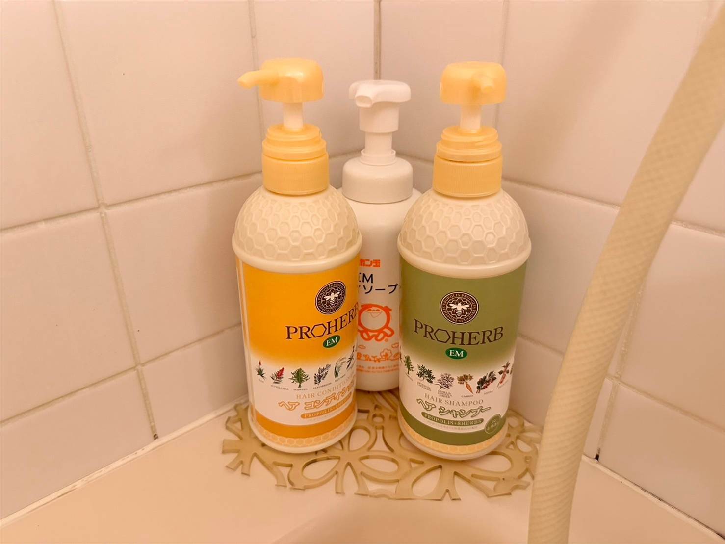 用意されているシャンプー類もEMホテルならではのこだわりの商品!