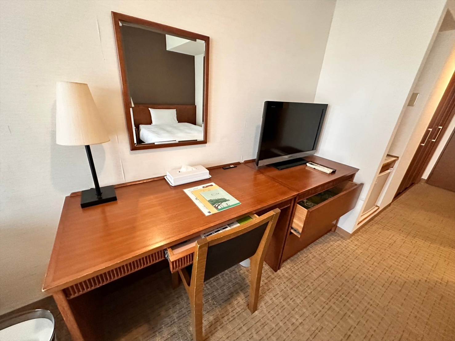 ▲ベッドの向かいには大きめの作業机があり、テレビも用意されています。