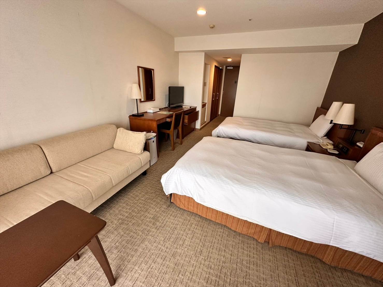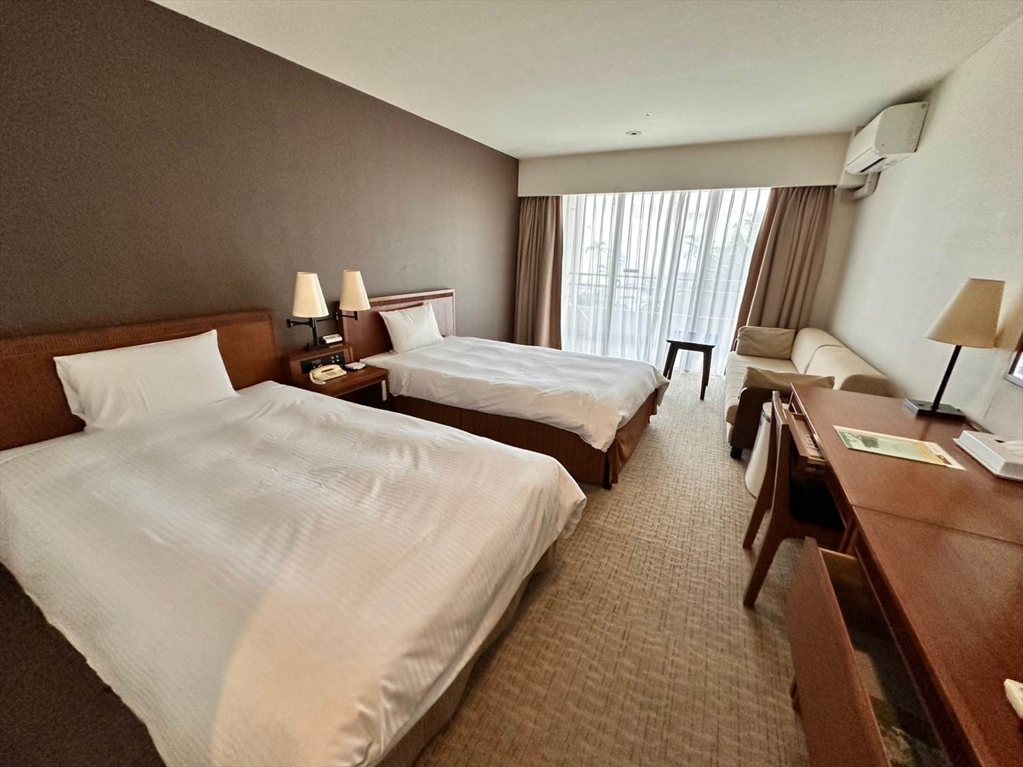ベッドが2台と、奥にソファ&テーブルが用意されたレイアウトで、全体的に広々していたのが印象的!