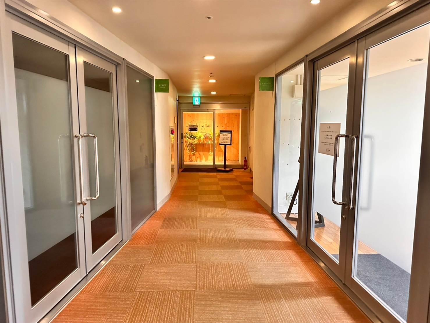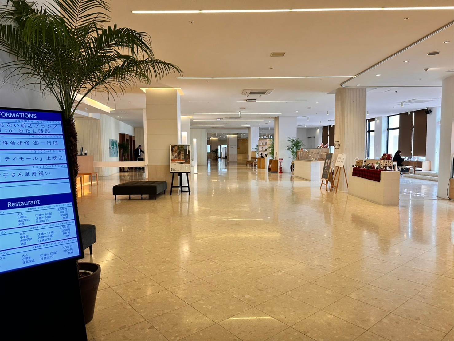 ロビーには広い窓が用意されており、天気が良いタイミングには奥に海も見渡すことができてとっても開放的でした。