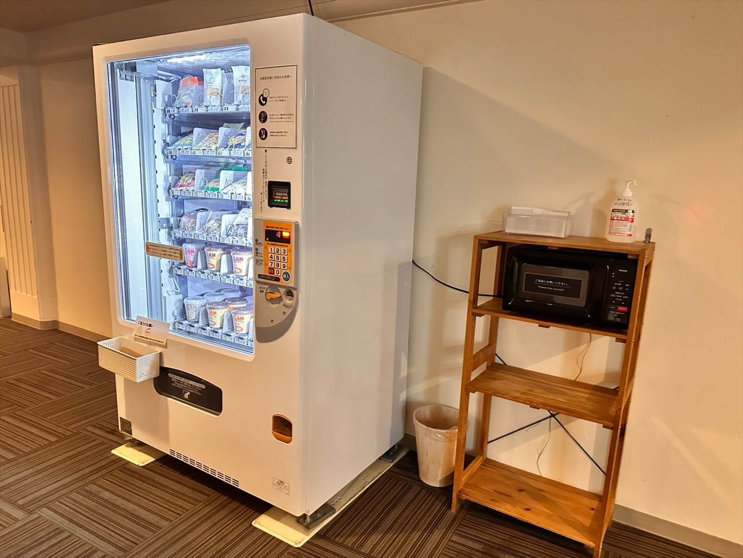 ▲2階ウォーターサーバ付近には、軽食を販売している自動販売機と電子レンジがありました。