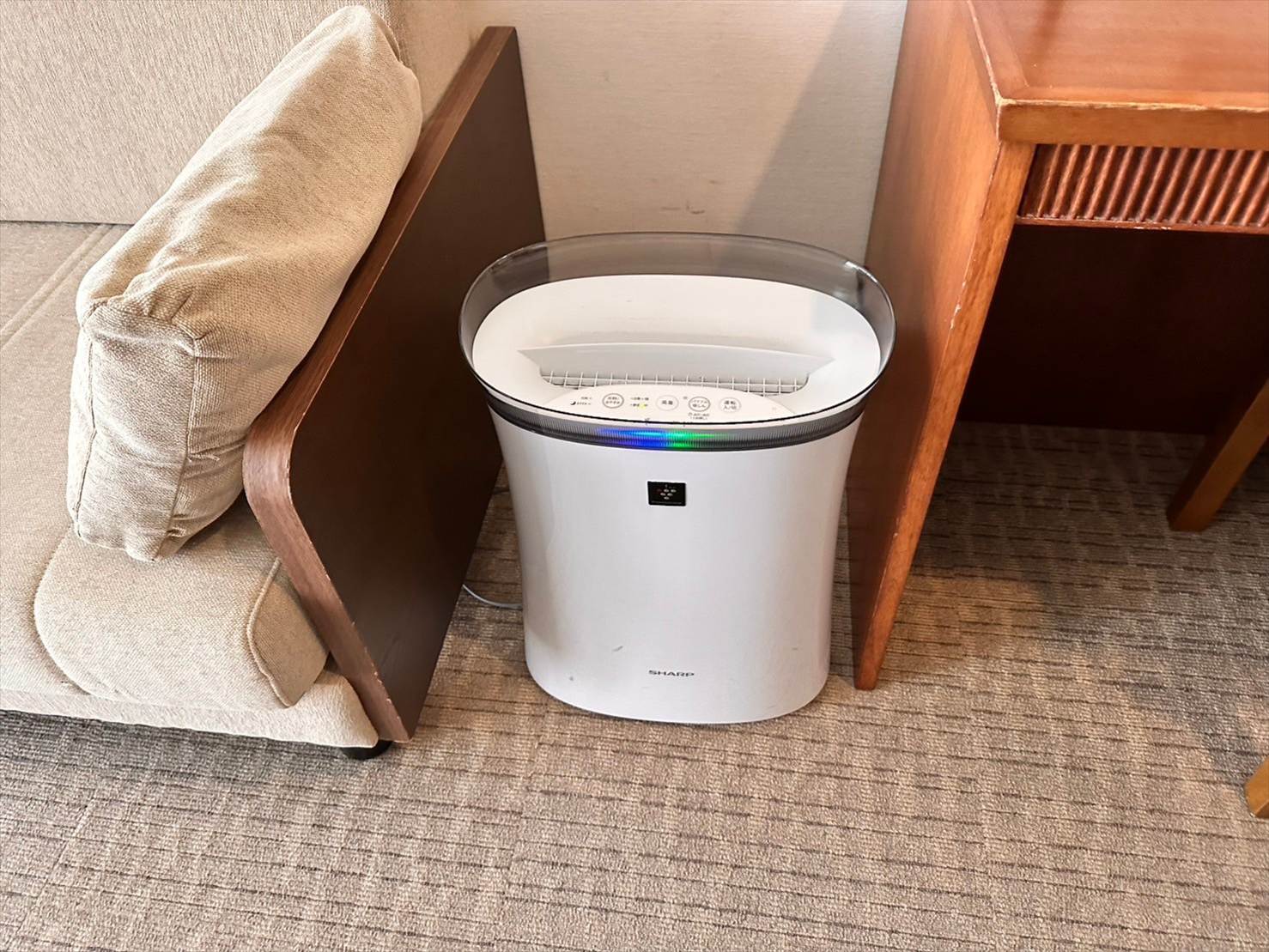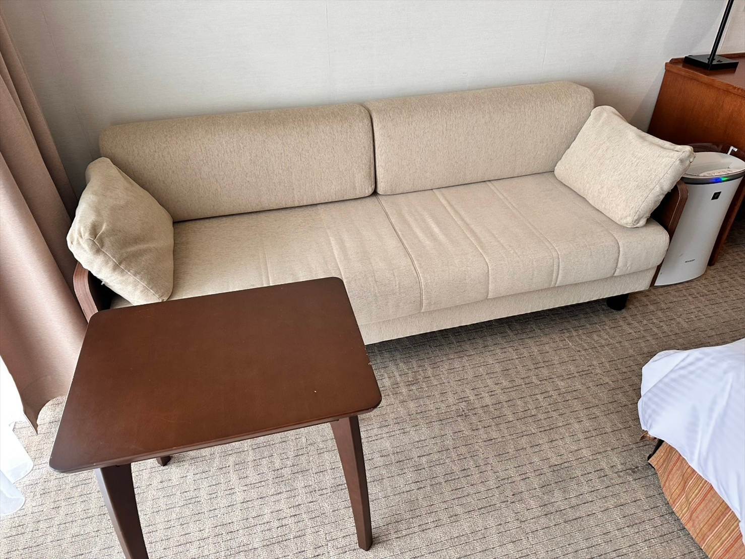 ベッドの他にお部屋の中でくつろげるスペースがあるのがありがたいポイントです。