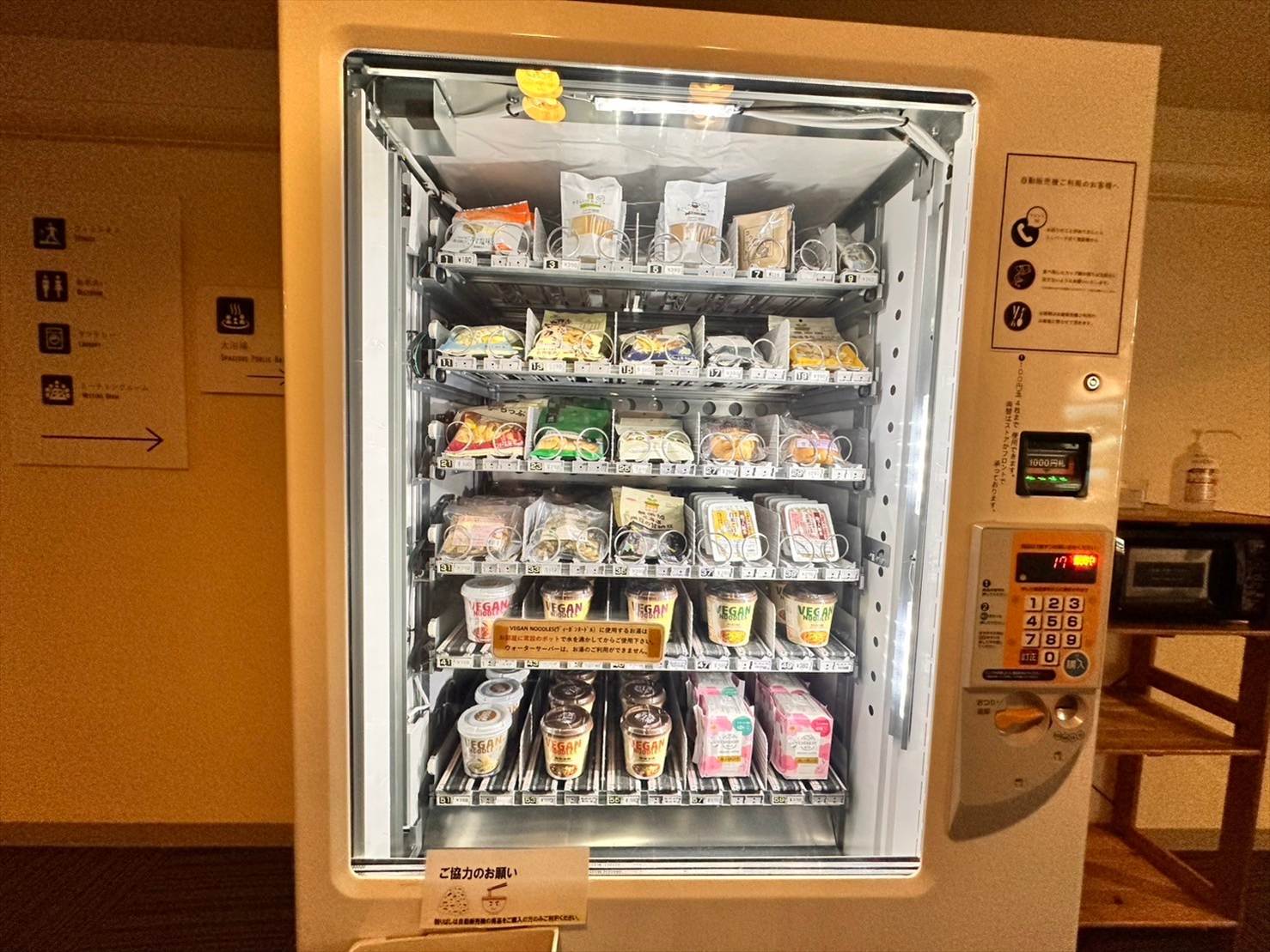 ▲自動販売機ではヴィーガンやEMにこだわった商品がズラリ。