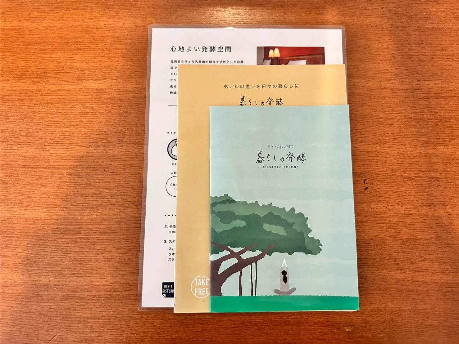 ▲テーブルの上にはホテルのこだわりと、それを暮らしに取り入れるにはどうしたら良いのか?などが記載された冊子が準備されていました。