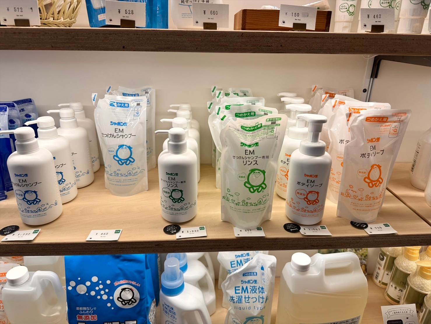 この備え付けの洗剤も、EMにこだわった無添加のシャボン玉製のものでした!
