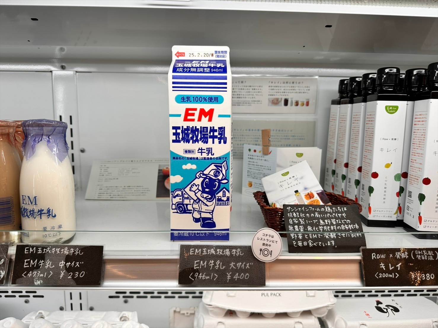 ▲朝食ブッフェのときに用意されていたEM牛乳も販売されていました!