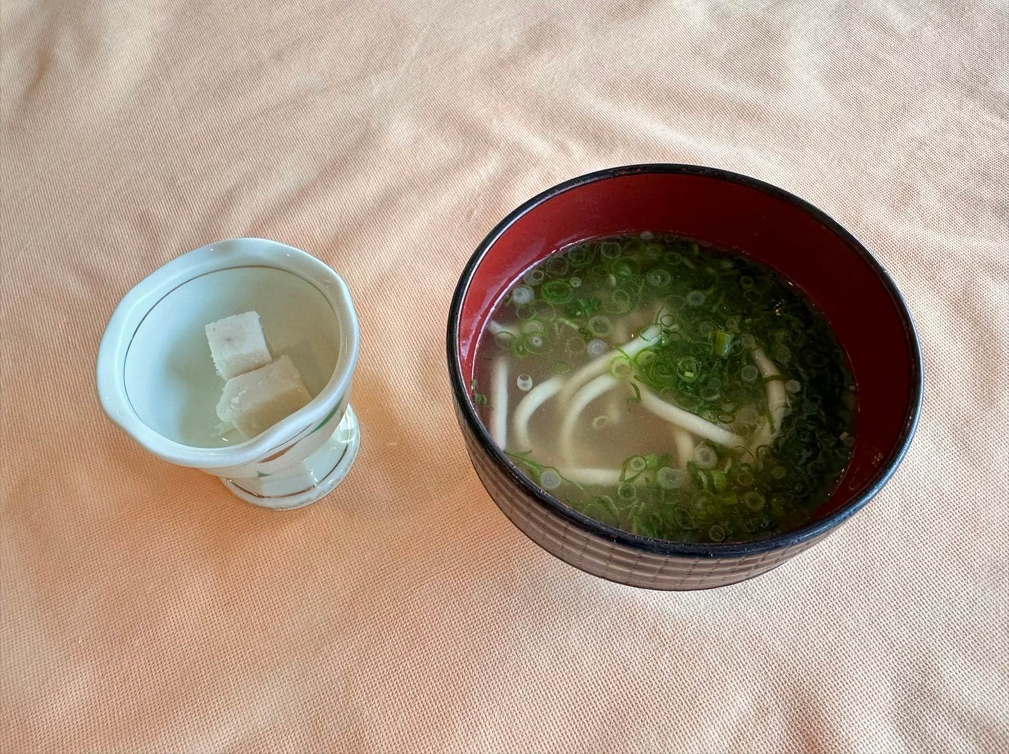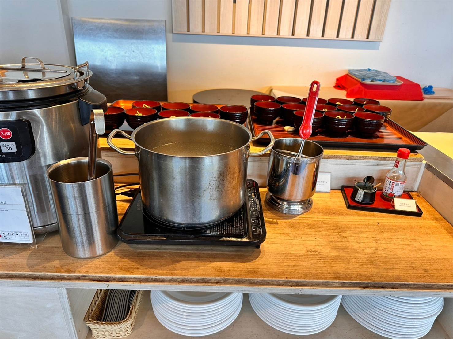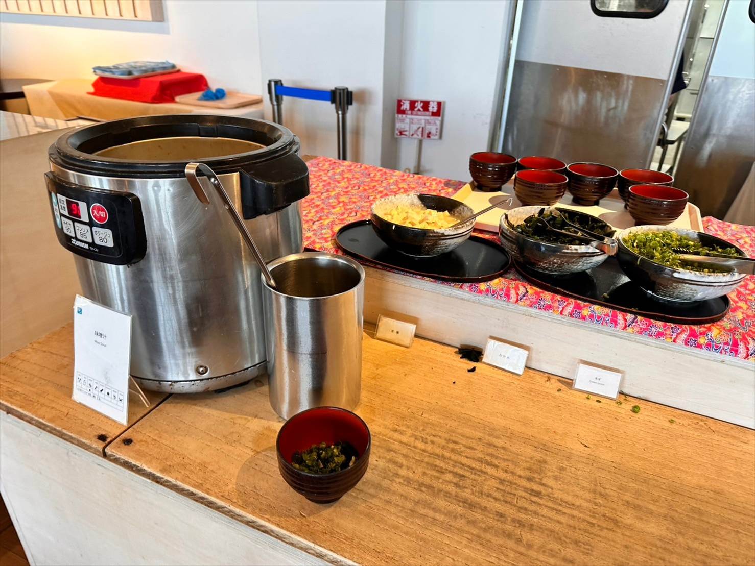 ▲味噌汁は自分で好みの具をトッピングできる形です。