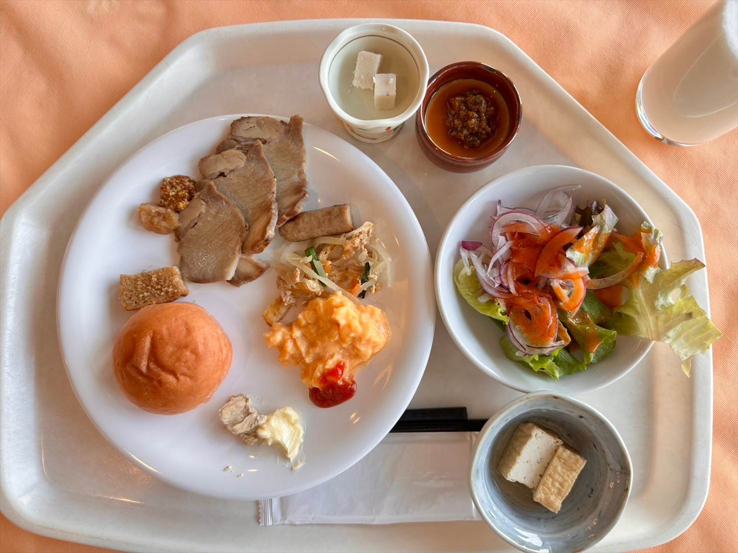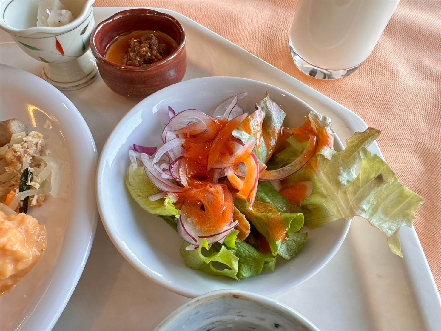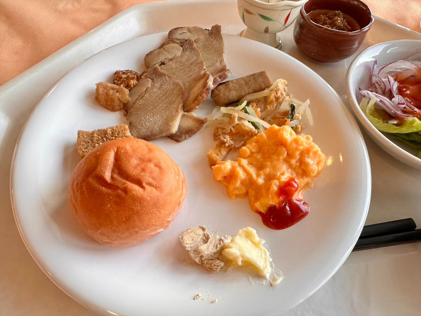 長寿ドレッシングとか、普通のホテル朝食にはないメニューがあって面白かった!