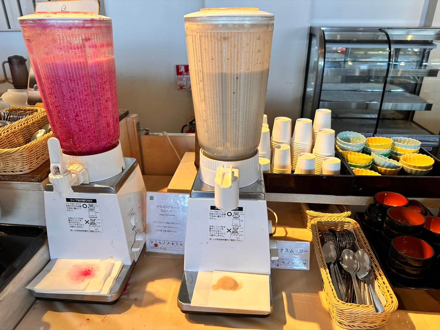 ▲その場で作られているドラゴンフルーツスムージー&バナナスムージー。