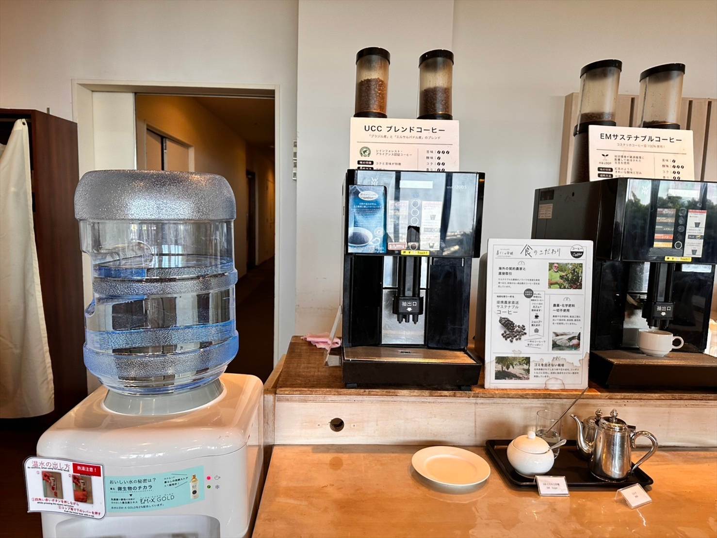 UCCブレンドコーヒーと、EMサステナブル珈琲の2種類があり飲み比べできる仕様になっていました。