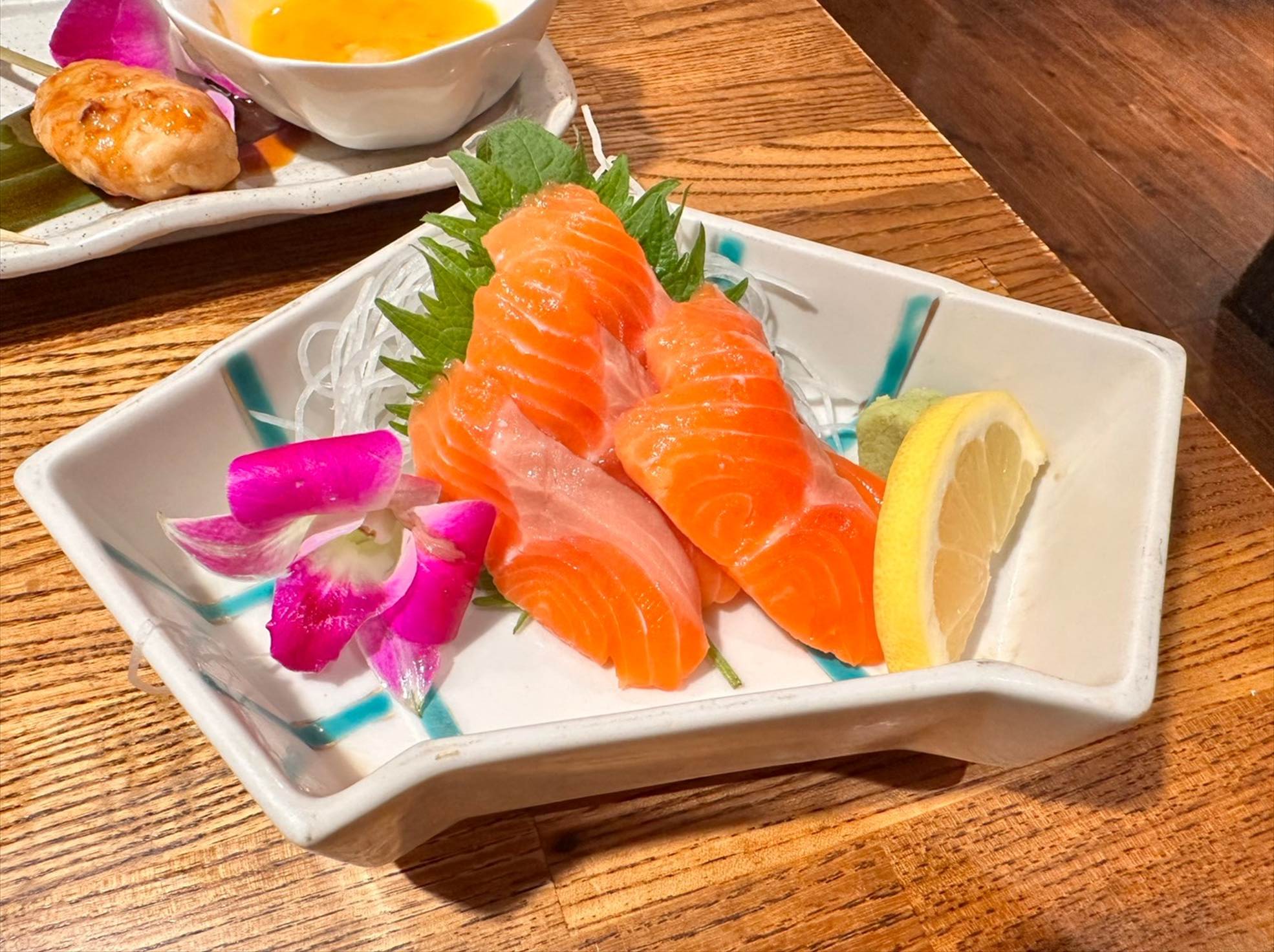 ▲トロサーモン刺し(680円)。沖縄のあたたかい気候に載せられて、何やらお刺身が食べたくなってオーダーです。