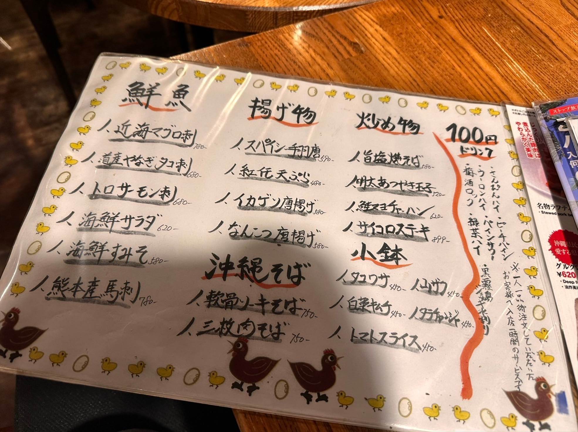 そして手書きメニューの右端には、入店から1時間のサービスとして100円ドリンクの記載がありました!