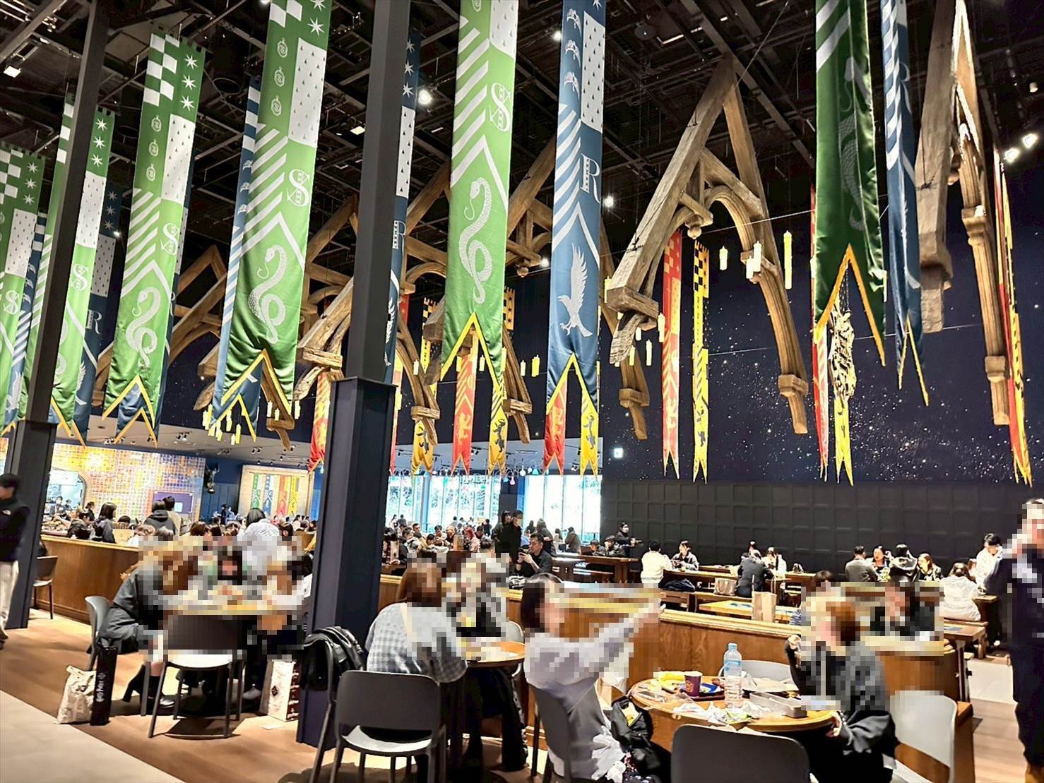 ホグワーツの大広間をイメージした空間で、席数も多くのんびり食事できそうな雰囲気でした!