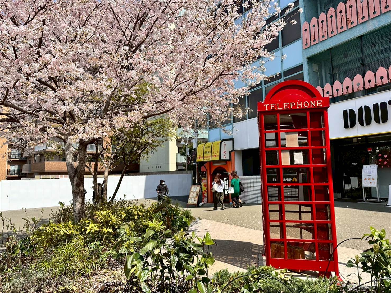 タイミングよく、電話ボックスのすぐ脇の桜も満開で、とっても素敵なスポットでしたね…!