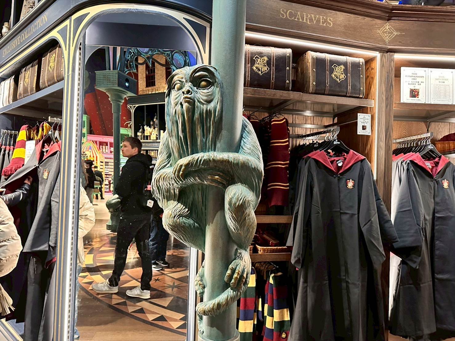 USJと比べても遥かに大きく、それでいて手の込んだ装飾が施され、ここまでどっぷりと浸ってきたハリー・ポッターワールドからいい感じで覚めることなく、買い物を楽しめるようになっていました。