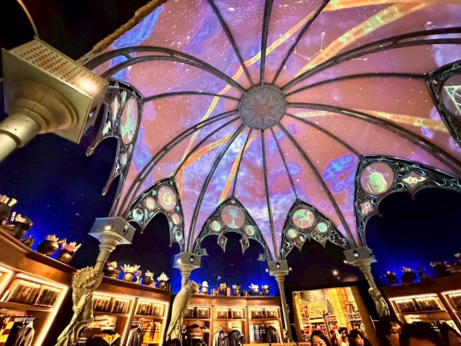 ぐるっと360°、頭上にホグワーツやハリーの名シーンの映像が投影され、城内にはハリーのBGMが流され、気分はもう最高潮…!