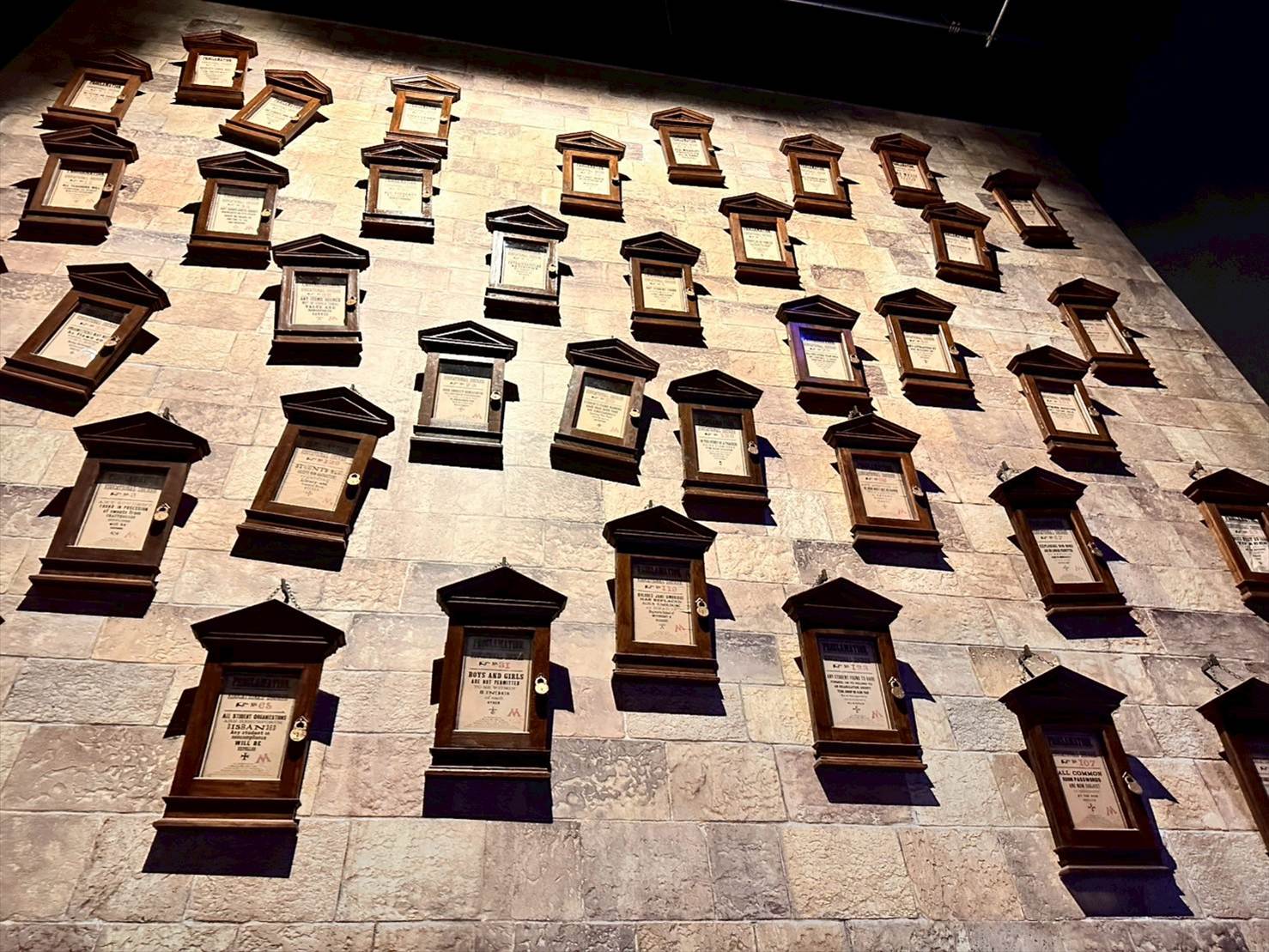 こちらは杖の箱の空間。なんでも、ハリー・ポッターに関わったすべての人のお名前が記されているんだそうです。