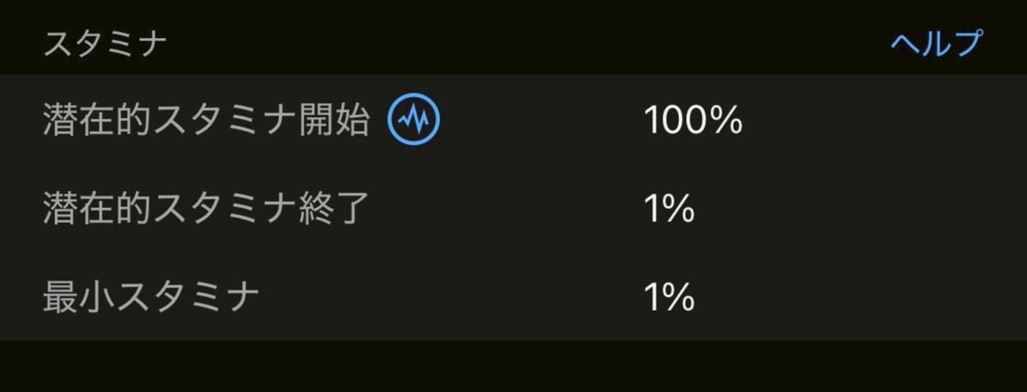 ちなみにGarminの「スタミナ」機能とは、レース中にどれだけ体力が残っているかを数値で表示してくれるもの。