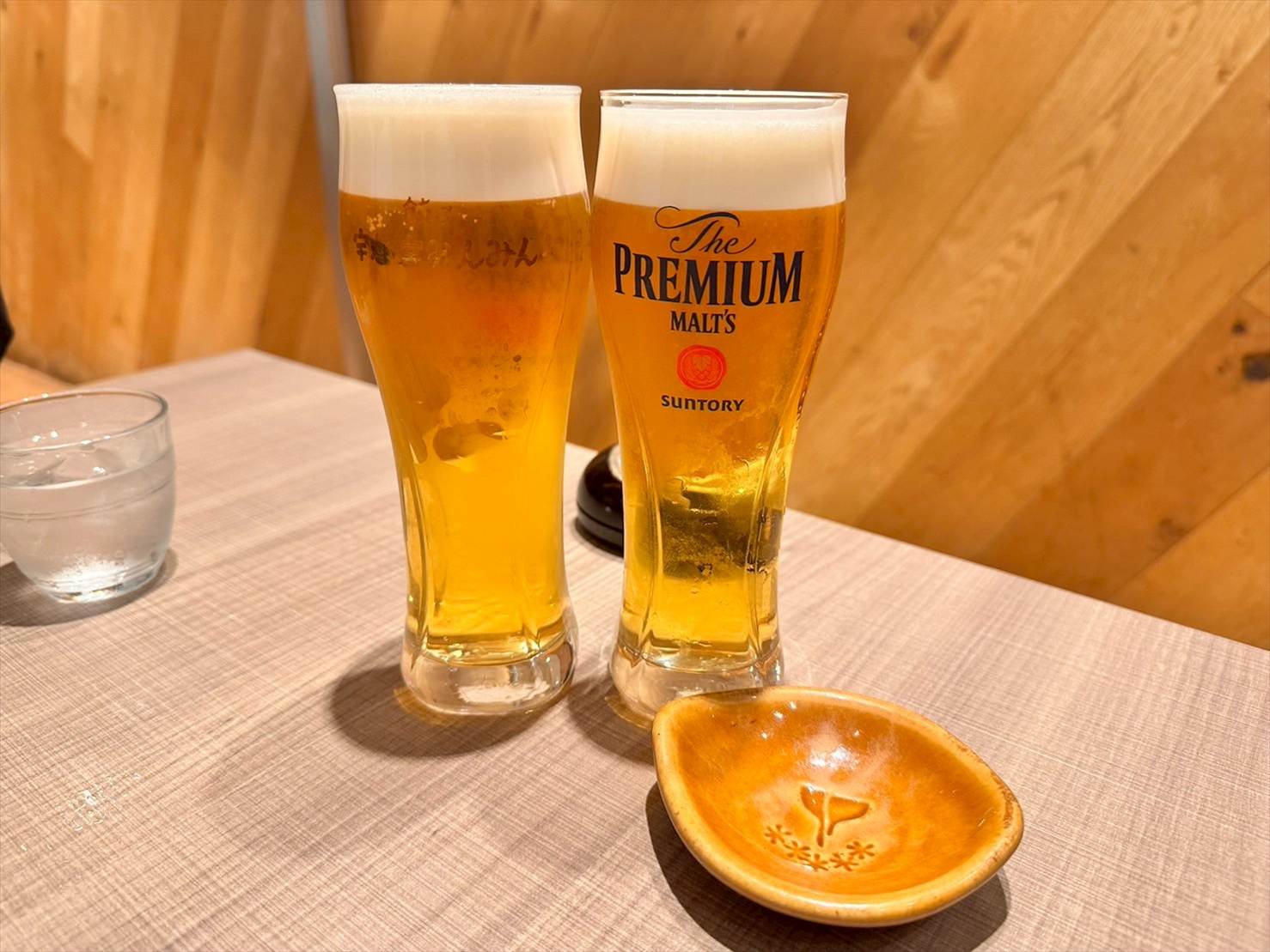 こちらのビールの銘柄はプレミアム・モルツ。やっぱり美味しいですね…!