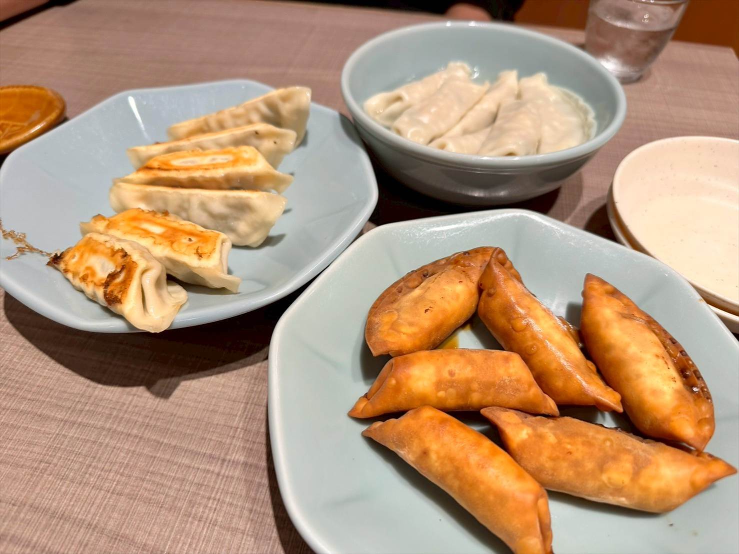 ▲今回オーダーしたメニューは「焼餃子」「水餃子」「揚餃子」の3つ。