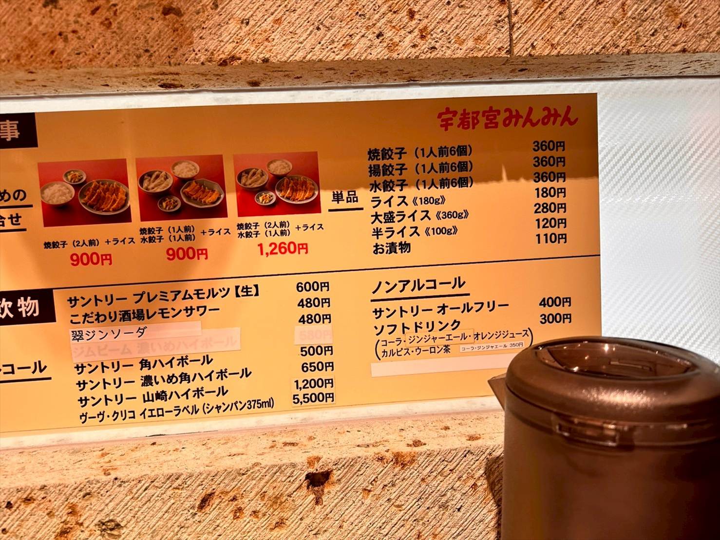 ▲宇都宮みんみん ホテルメッツ店のメニューはこちら。
