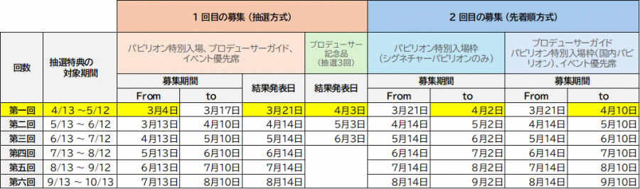 例:5月末の来場 ←4月半ば頃に抽選応募締め切り