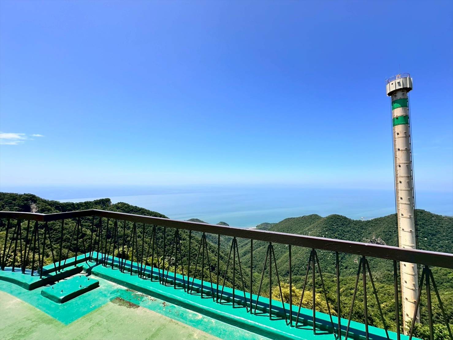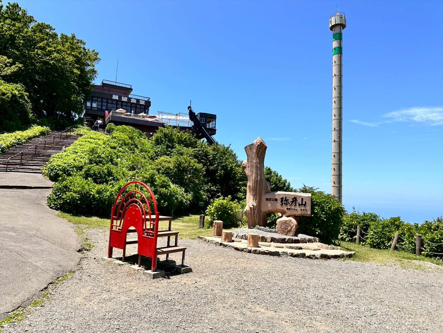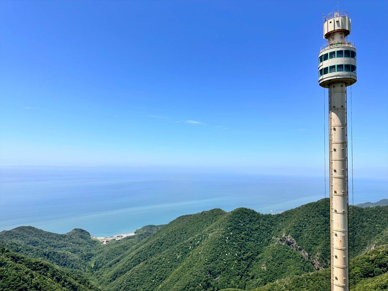 ▲実はロープウェイ山頂駅には、展望食堂のほか、弥彦山スカイライン山頂駐車場と展望食堂をつなぐ”クライミングカー”に、駐車場側に設置された”パノラマタワー”というスポットが用意されています。