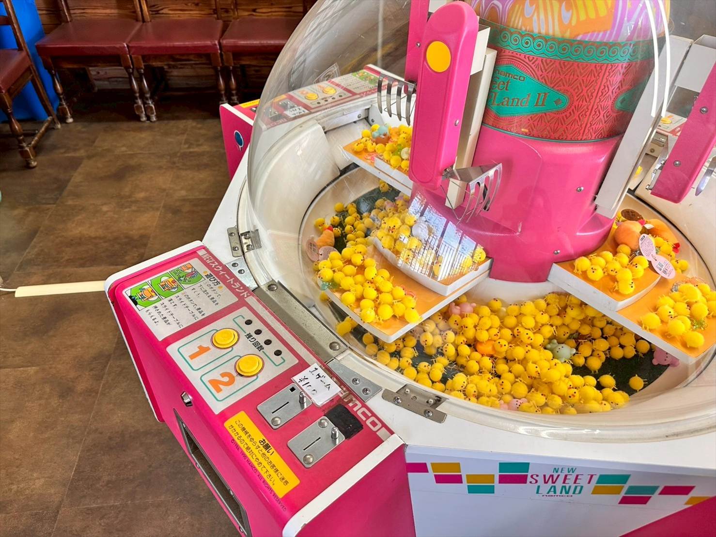 ▲年季の入っていそうなUFOキャッチャーの姿も!