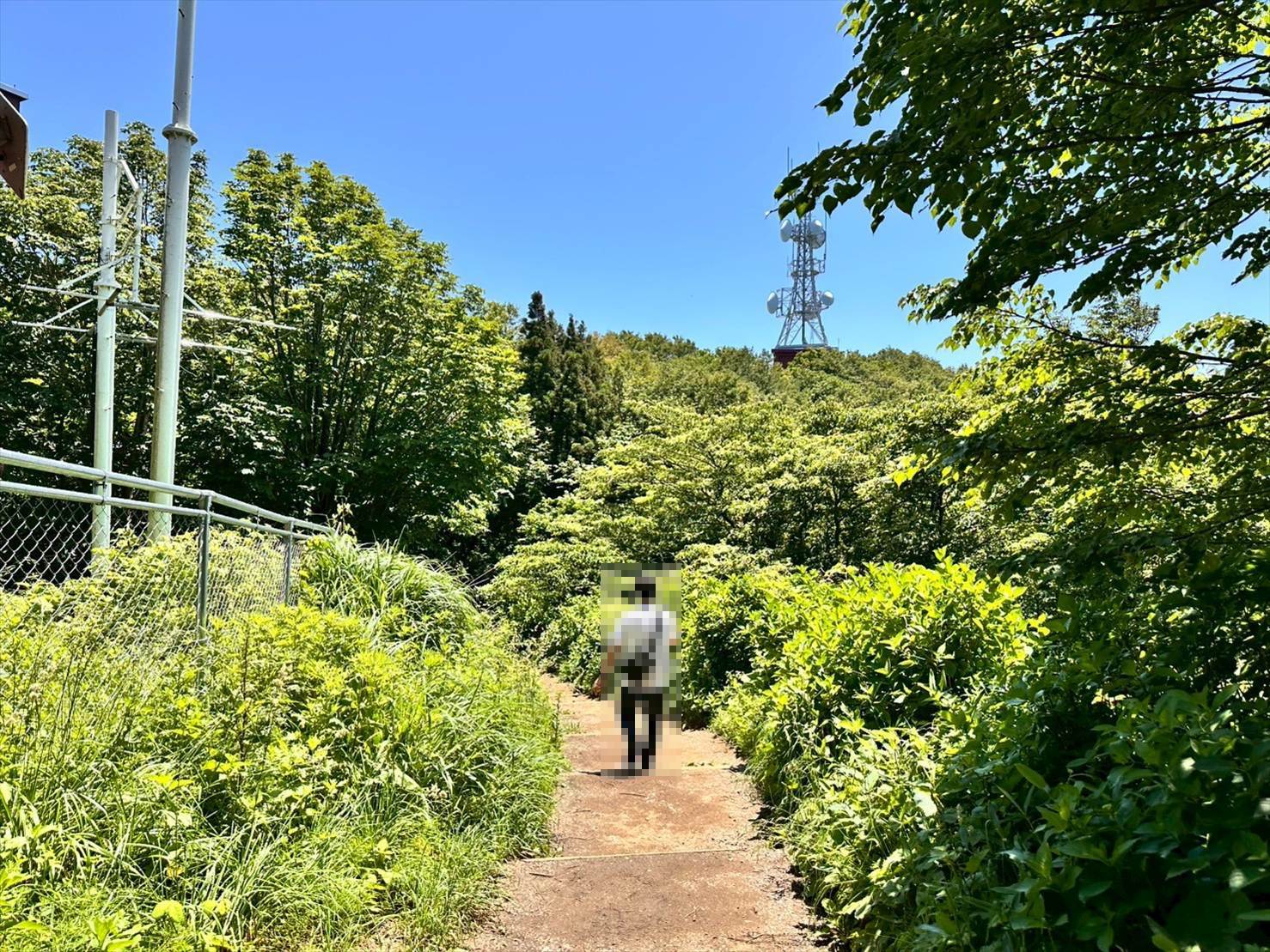 弥彦山の山頂は、ロープウェイを降りたこの場所から、更に15~20分ほど歩いた先にあるんです。