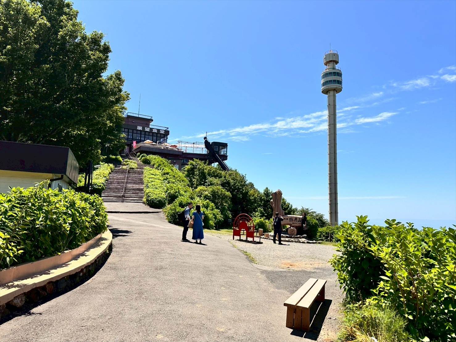 約5分の空中散歩を楽しんだ先では、新潟市街と日本海の絶景を楽しむことができる山頂エリアが待ち構えています。