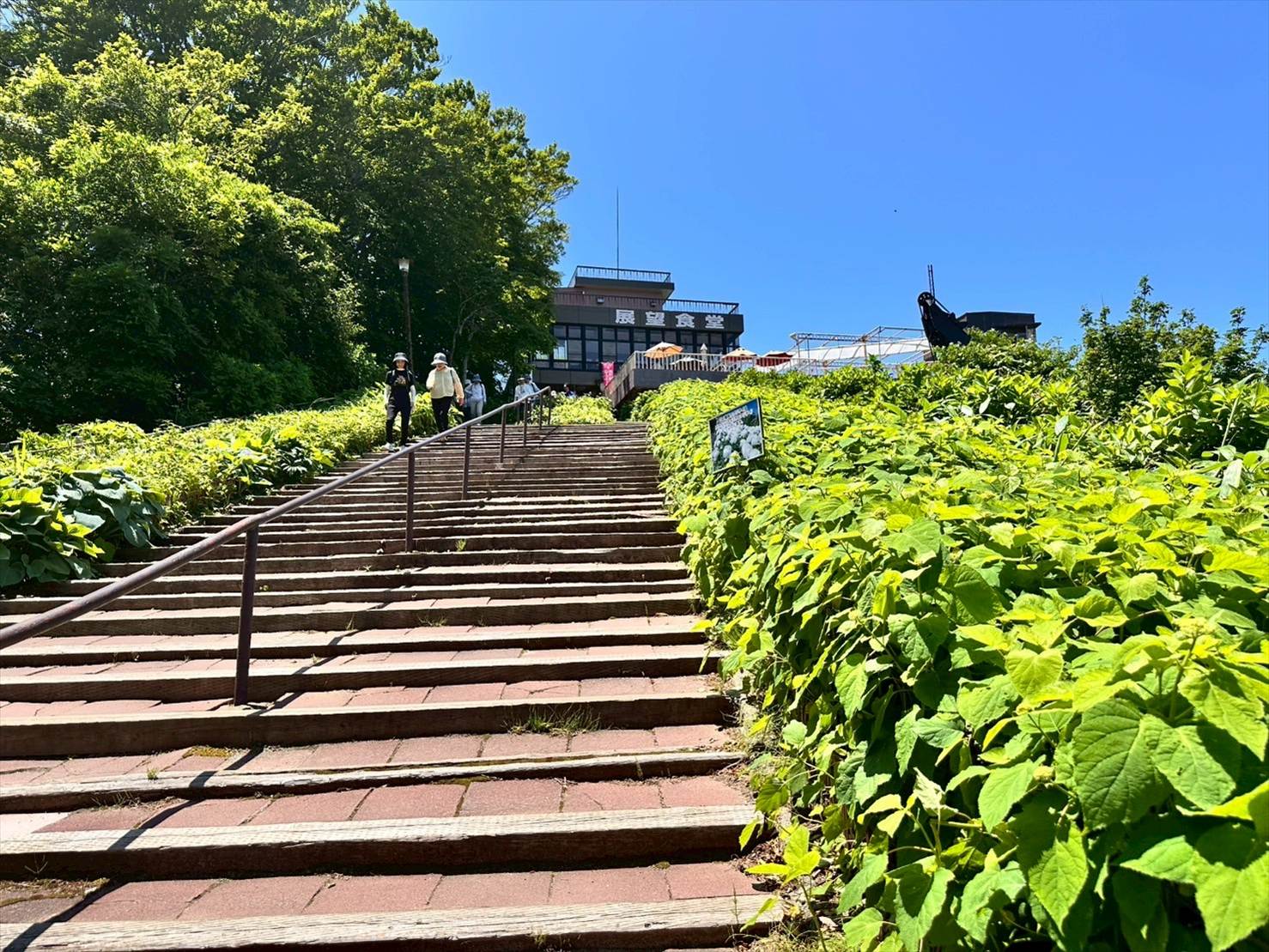 ▲階段を登って二階が展望食堂となっており、山頂駅エリアからの景色を楽しみながら食事を楽しむことができちゃいます。