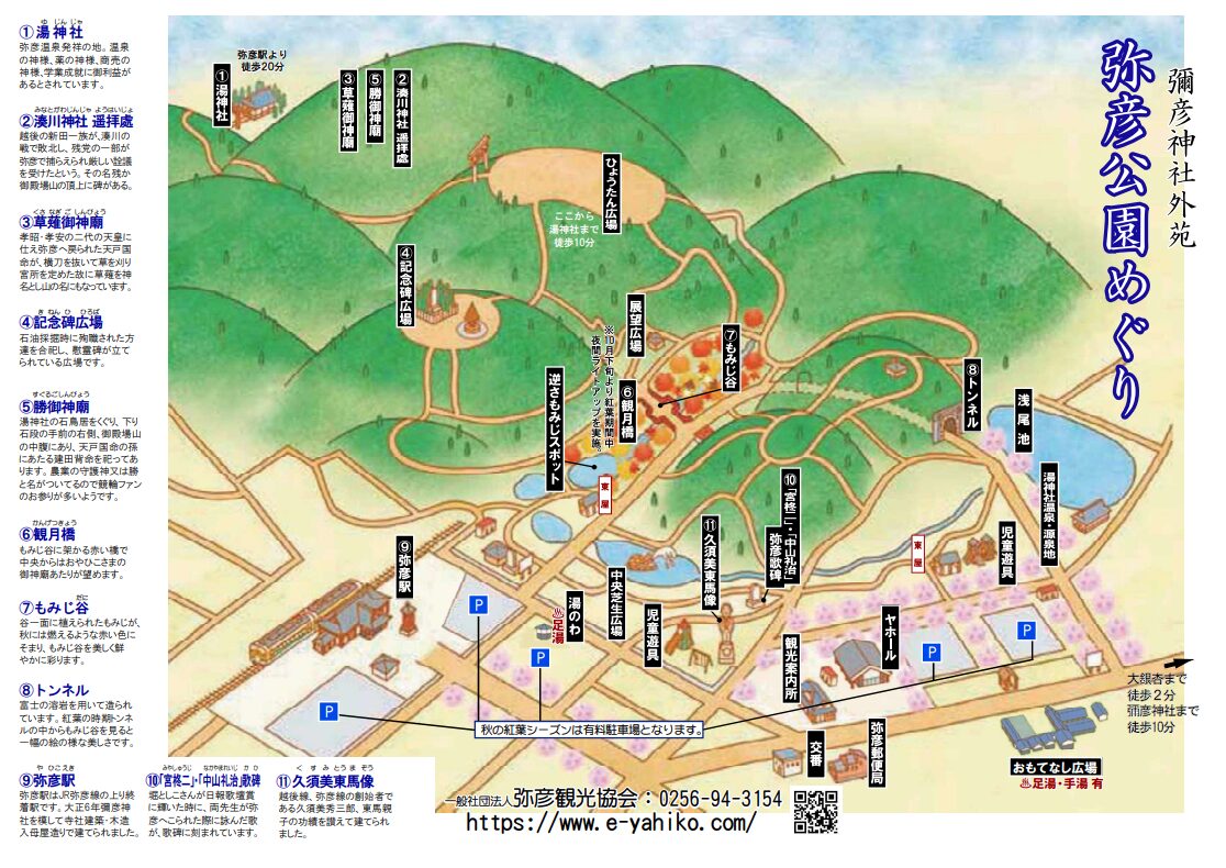 | 公式HP | https://www.e-yahiko.com/spot/yahikokouen/ | ||