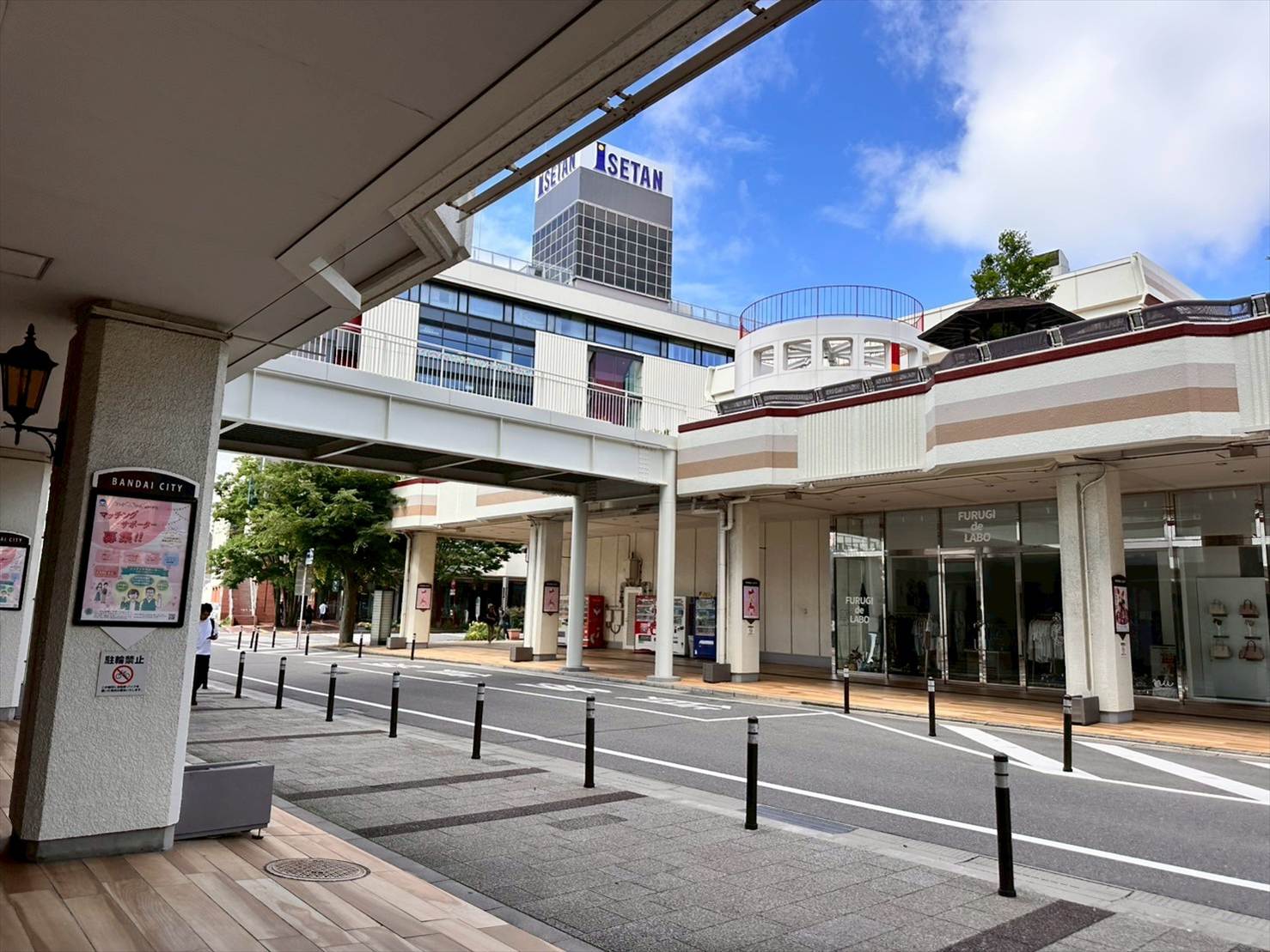 ▲弥彦神社から10分ほど駅に戻る方面に歩くと、様々なショップや飲食店・カフェが軒を連ねる”おもてなし広場”にたどり着きます。