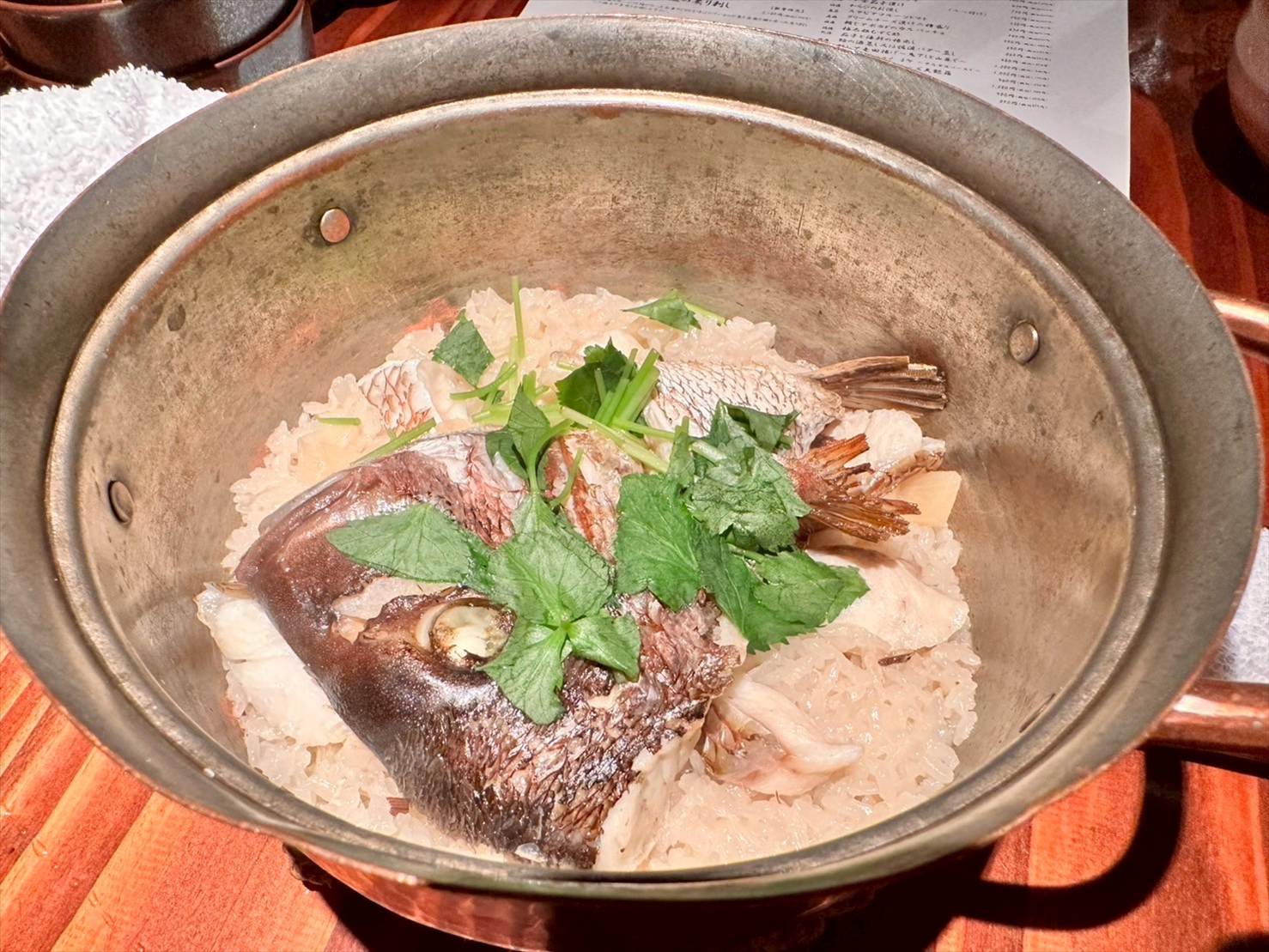今回は真鯛の釜戸炊きご飯(税込2,178円)をオーダーしました。