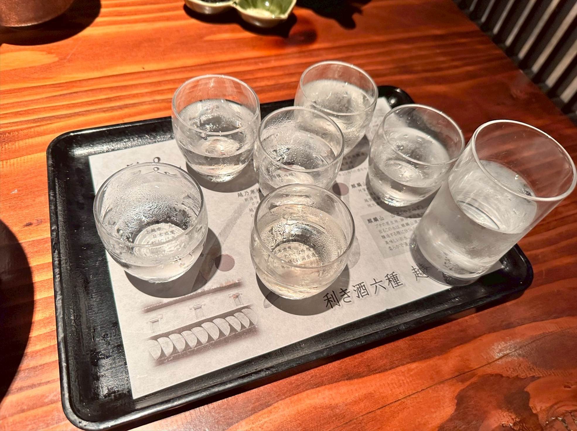 👇️の6種類の越後の地酒と、和らぎ水が付いたセット。