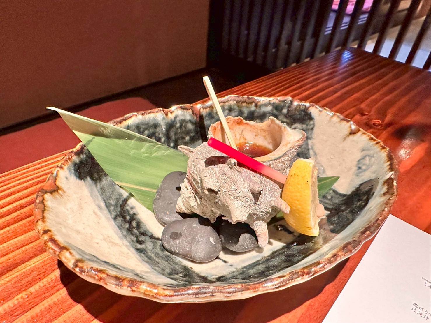 ▲お刺身で調子に乗ったぷらはさん、気がついたらぷらはさんの大好物であるさざえのつぼ焼き(\800くらい)を注文していました。笑