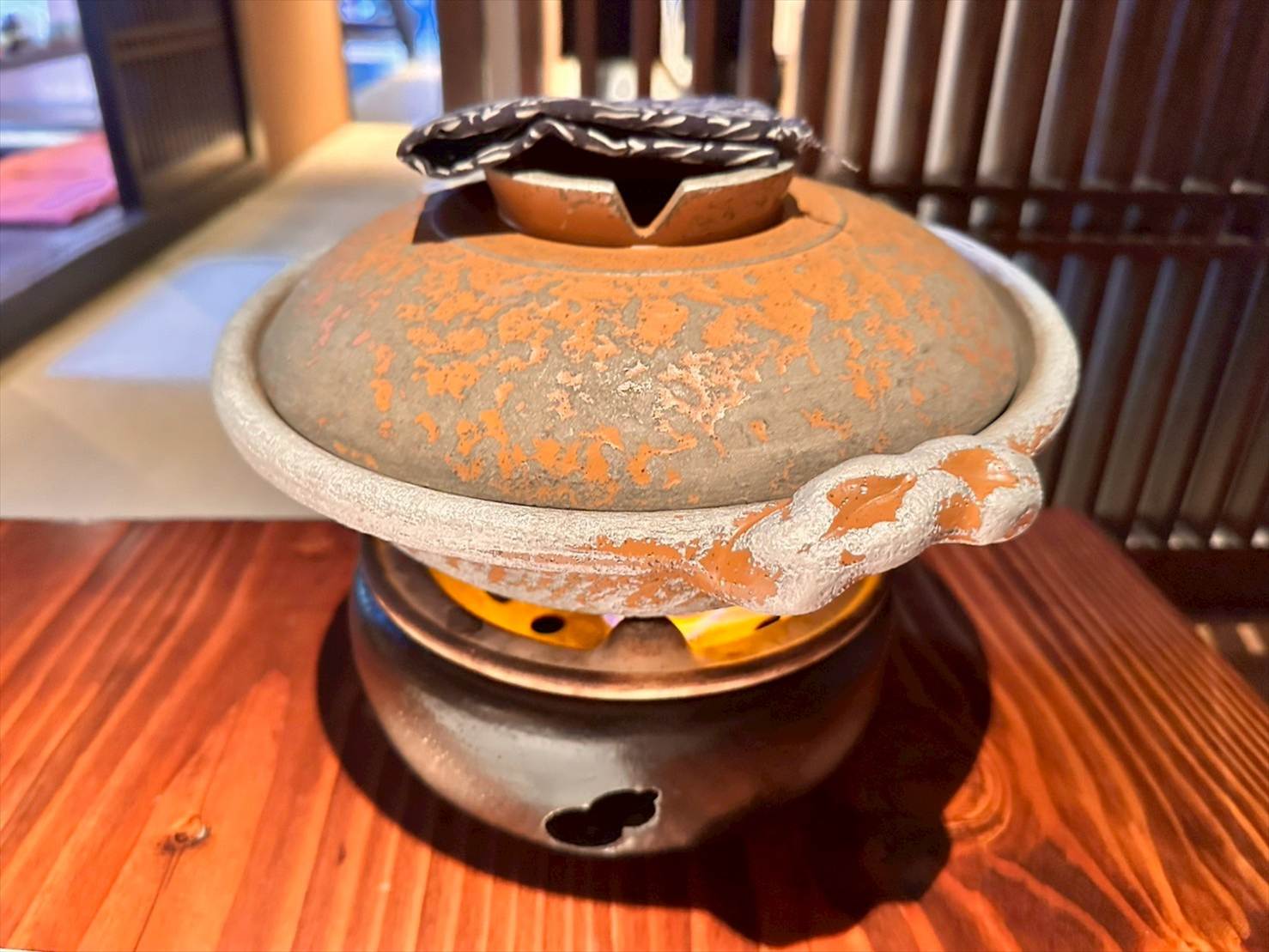 ▲そうこうしているうちに、お通しの土鍋蒸しからいい感じの湯気が上がってきて準備が整いました。