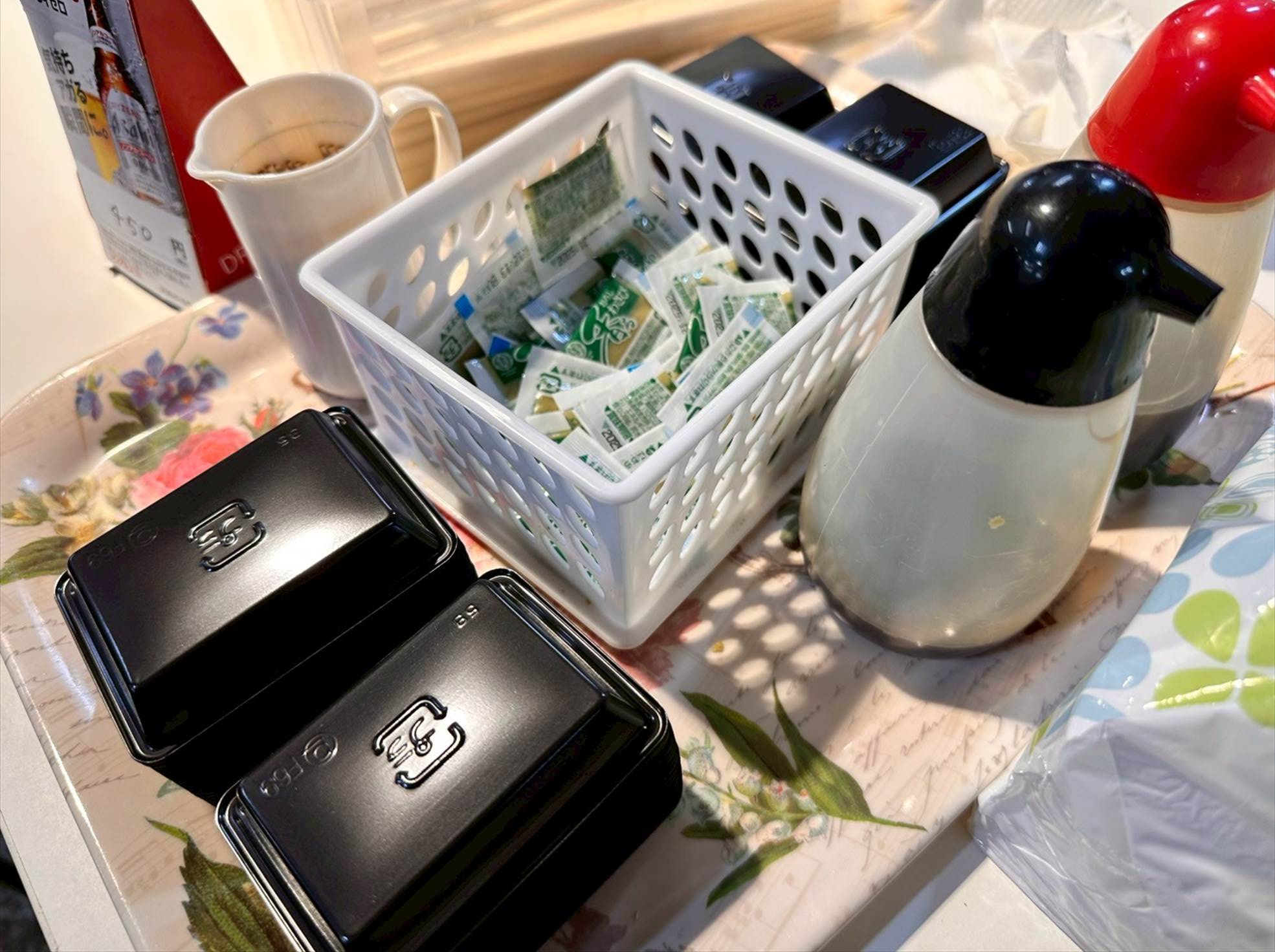 ▲席には醤油・わさびが完備されており、自由に利用できるようになっていました☺️