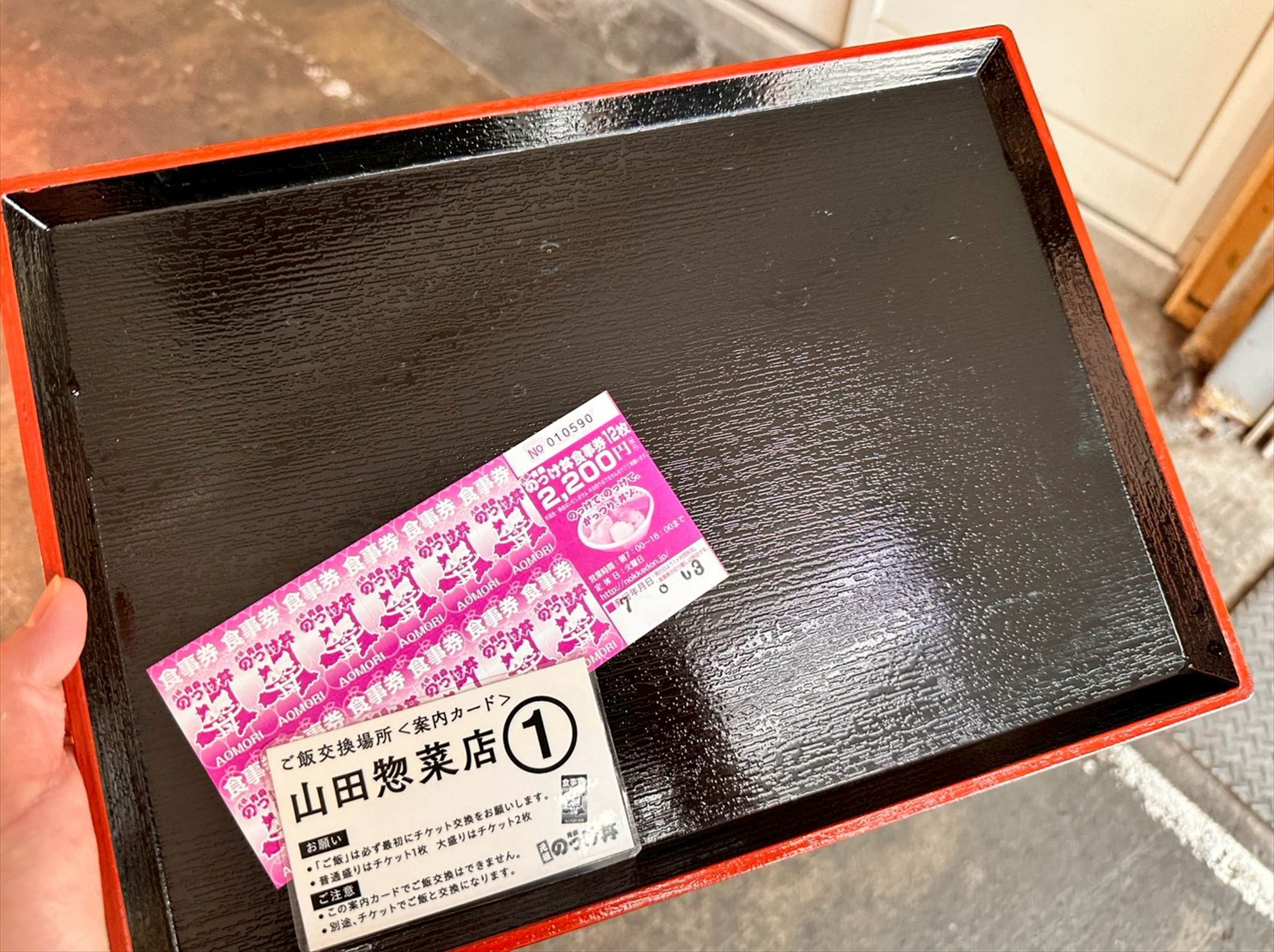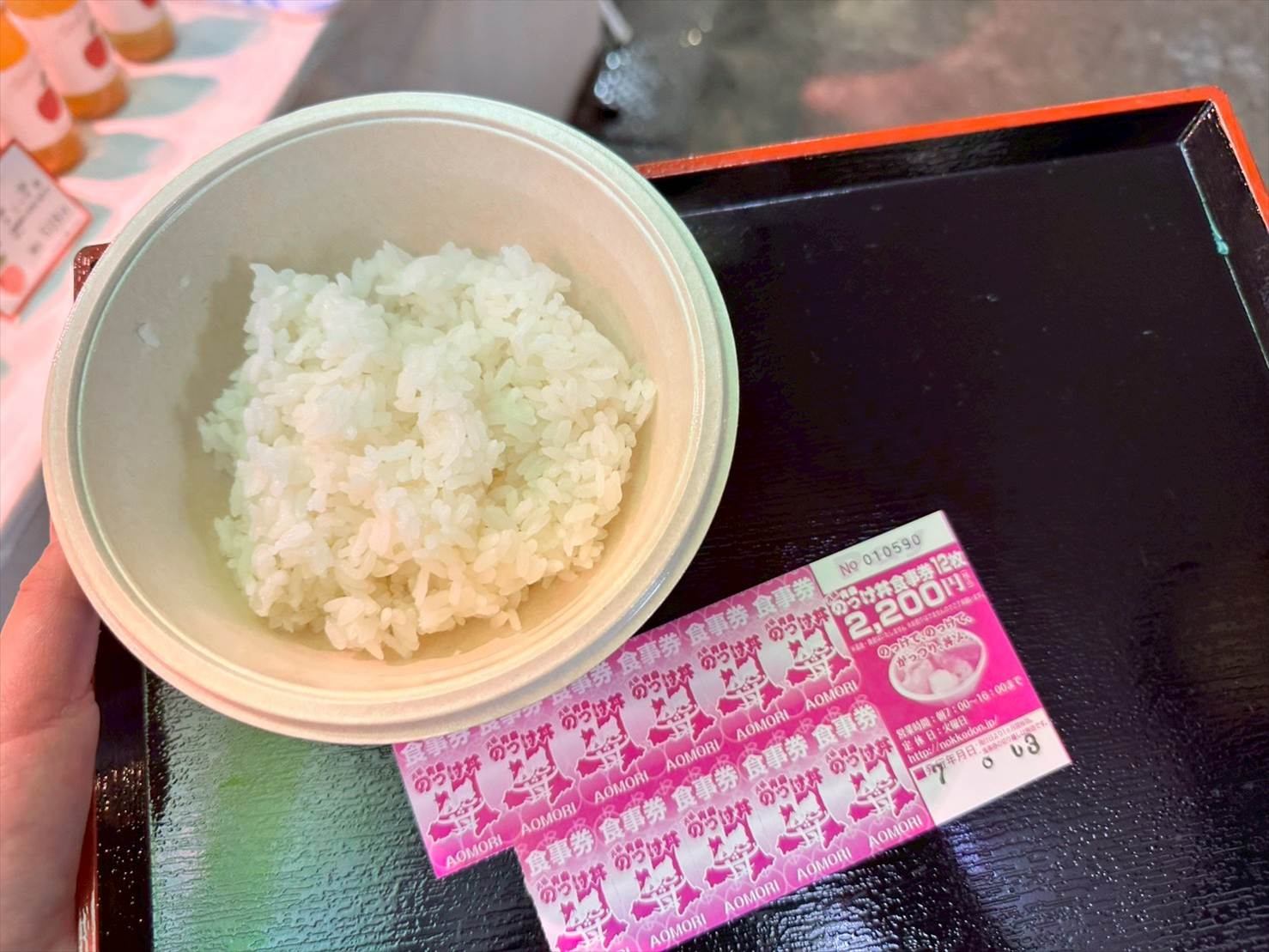 指定のごはん屋さんで券を丼ご飯に引き換えます。